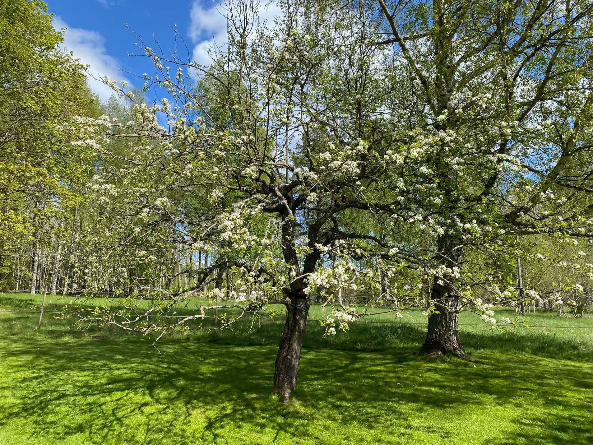 Rödjans lilla Gröna var här hos oss på vårvintern och klippte våra fruktträd. Det gjorde susen! Vårt gamla päronträd som alltid varit en smula återhållsamt blommar så det knakar. Och pollinerarna är överförtjusta.